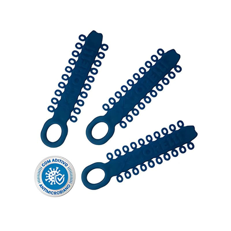 O Elástico Ligadura Modular Antimicrobiano Azul Petróleo é indicado para todos os tratamentos ortodônticos, e especialmente indicado ao tratamento com bráquetes estéticos.