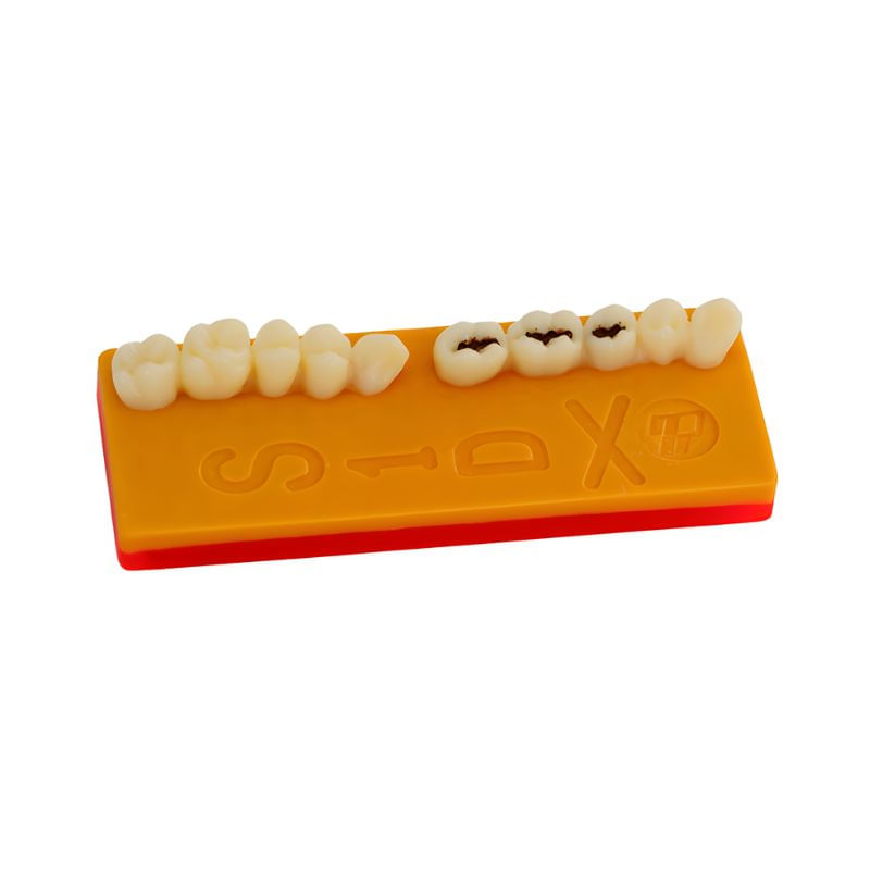 Contém coroas dentárias, que serão utilizadas para a simulação de preparos cavitários.