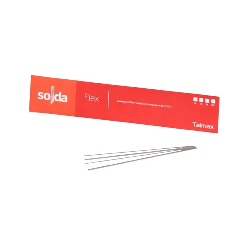 A Solda Flex 2g é indicada para a união e reparo de estruturas metálicas em próteses odontológicas, proporcionando resistência mecânica e acabamento preciso nas restaurações laboratoriais.
